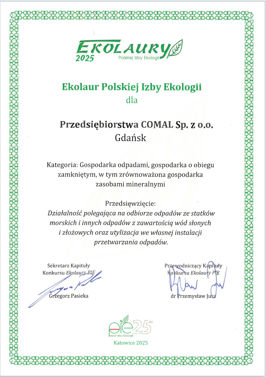 Przedsiębiorstwo COMAL, usytuowane w obrębie morskiego portu Gdańsk, specjalizuje się w zakresie odbioru, transportu, oczyszczania, unieszkodliwiania i odzysku odpadów przemysłowych, zwłaszcza wód zaolejonych, ze statków i przemysłu lądowego. Zagospodarowanie odpadów niebezpiecznych i innych niż niebezpieczne odbywa się we własnej instalacji do odzysku lub unieszkodliwiania odpadów ciekłych - Oczyszczalni Wód Zaolejonych.